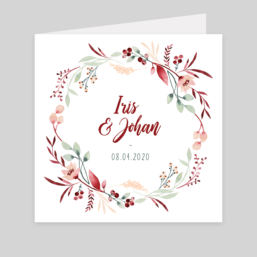 Le faire-part Couronne d’automne est idéal pour votre union automnale. Un faire-part doux imaginé par Marine et réalisé à l’aquarelle.