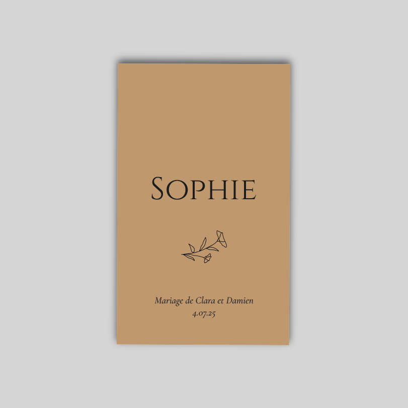 Le modèle Élégance est classique et raffiné. Il est disponible en papier blanc ou papier kraft pour s’accorder parfaitement à votre mariage.