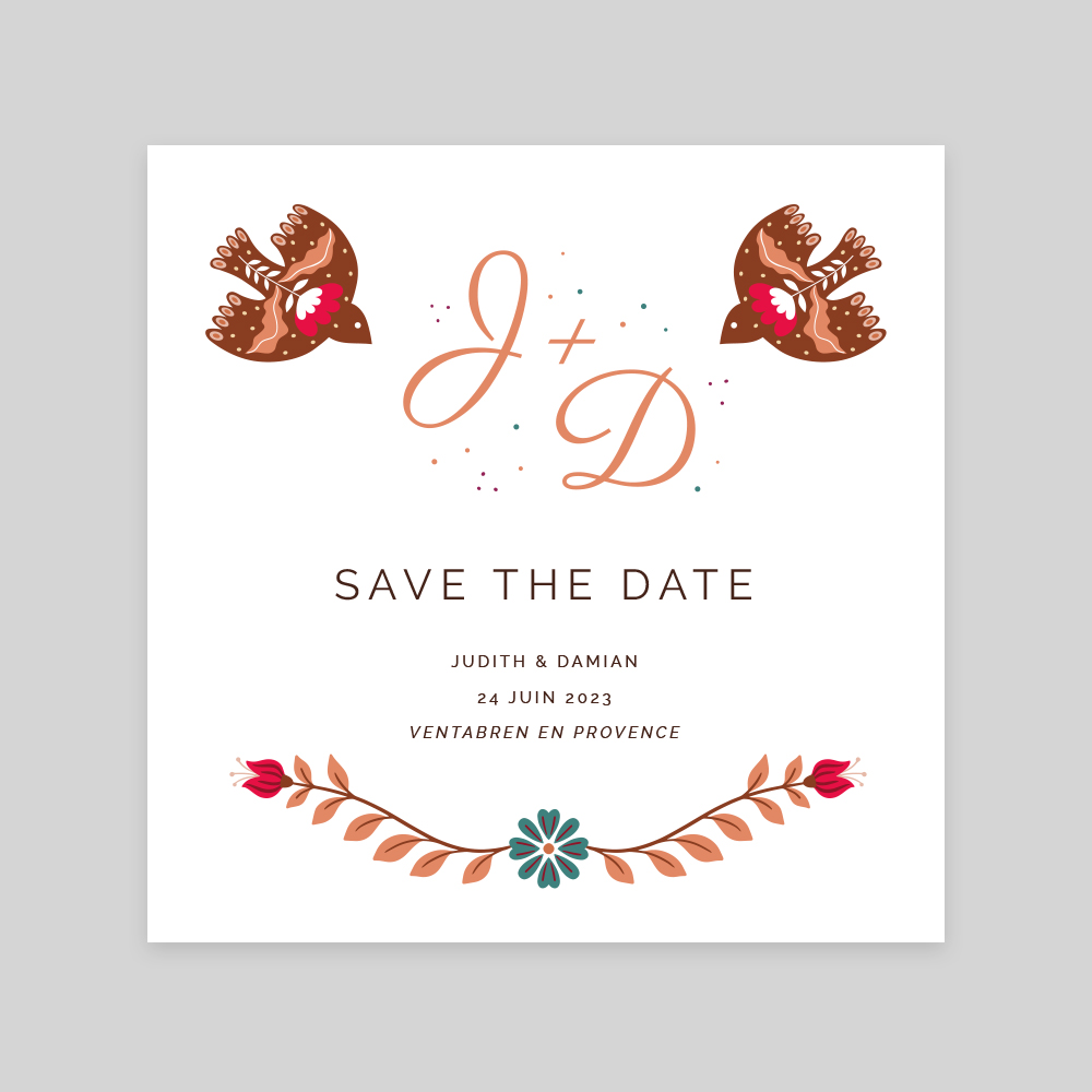 Le Save the Date Gypsy Bohème est idéal pour votre mariage fleuri et coloré. Ça pétille !