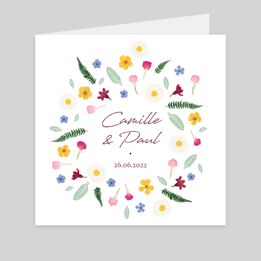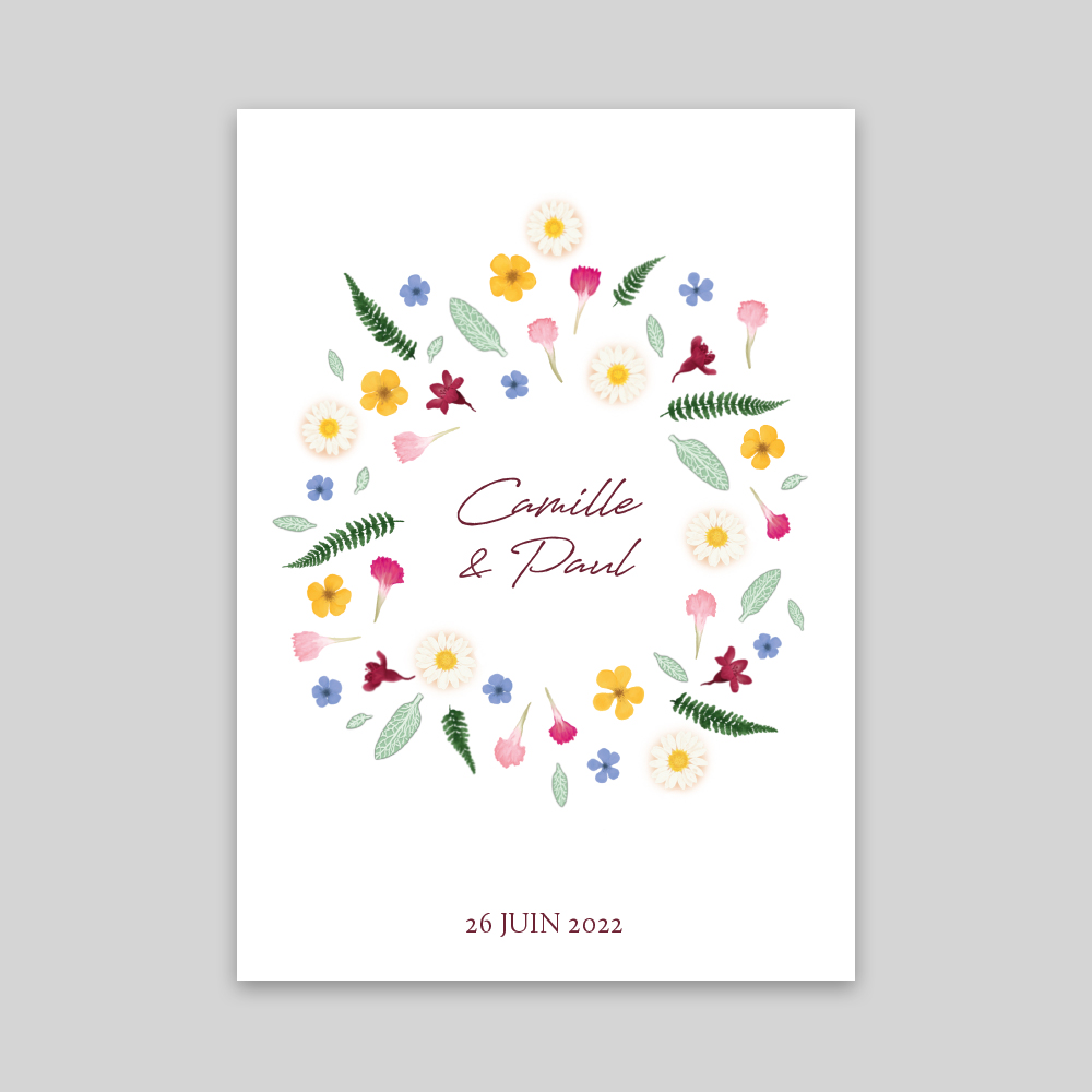 Ce faire-part Herbier nous transporte après une cueillette de fleurs et plantes sauvages.