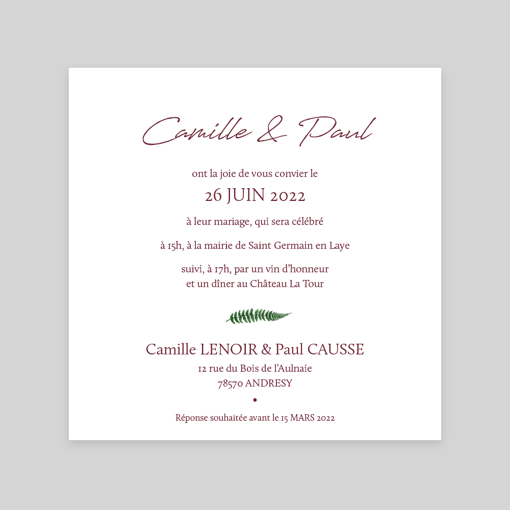 Ce faire-part est disponible sur le papier ensemencé artisanal, le papier tulipe et le papier recyclé.