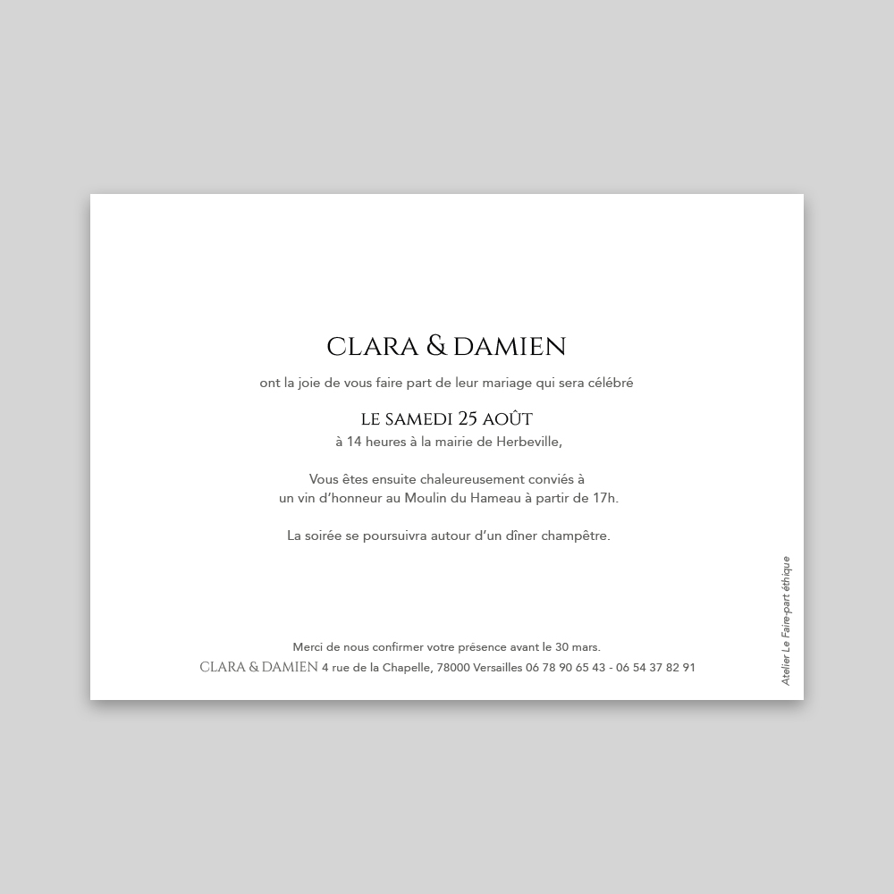 En attendant, vous pouvez passer votre commande et nous envoyer vos textes et photo à bonjour@lefairepartethique.fr afin que notre équipe de graphistes personnalisent pour vous votre faire-part.