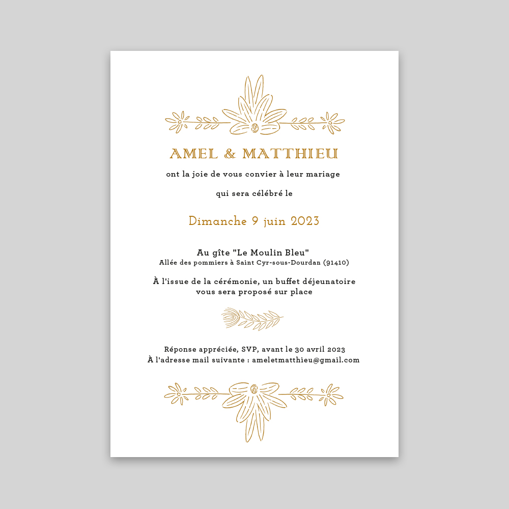 Ce faire-part est idéal pour votre mariage chic et végétal.